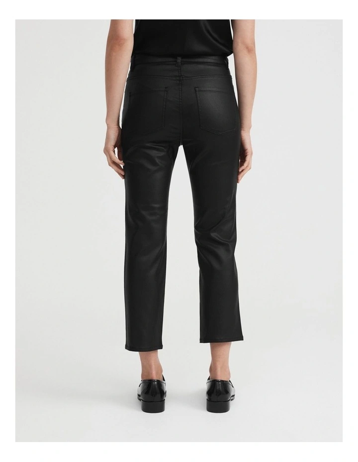 - Straight leg jeans in a coated finish
