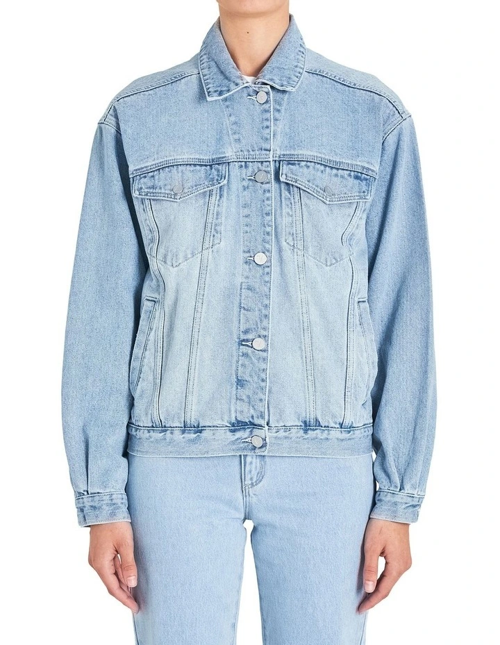 A Slouch Jacket is an oversized denim jacket perfect for layering or those wanting a more relaxed look. Includes four pockets at the front, silver trims and matching stitching. Gina is one of our most popular washes; light blue stonewash denim.
