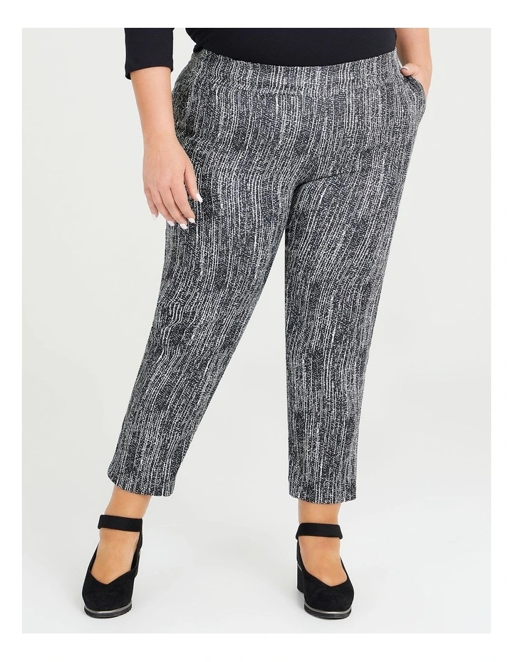Introducing the ultimate pant for the modern woman looking for both style and comfort! The Absolute Stretch Jacquard Pant from Taking Shape is the answer to all your fashion needs. Designed with a flattering straight leg and taper, this pant will accentuate your curves in all the right places, while the added stretch fabric ensures a perfect fit that moves with your body. With an elastic waistband, you can say goodbye to those pesky moments of discomfort and welcome a comfortable and confident fit all day long. The black and white jacquard design adds a touch of sophistication and versatility, making this pant perfect for any occasion. To top it all off, this pant comes equipped with side pockets, providing a practical and chic touch to your outfit. So, whether you’re heading to the office, going out with friends, or running errands around town, the absolute stretch jacquard pant will keep you feeling and looking your best all day long.Â