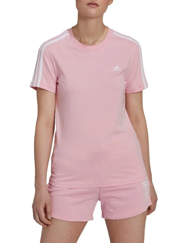 Let your sporty side shine in this slim-fit tee. The 3-Stripes run down both sleeves in contrasting colour that really pops. The tee has a classic look that pairs with nearly anything, from jeans to a tennis skirt to workout leggings.Our cotton products support sustainable cotton farming. This is part of our ambition to end plastic waste.