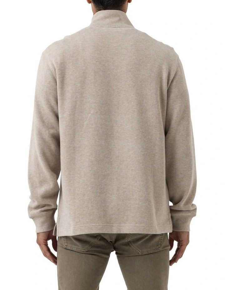 A mid weight mock neck sweat, in a cotton French rib. The fabric features a softly brushed surface for ultimate comfort and warmth. Simple and straight to the point, the breathable cotton fabric is an ideal trans-seasonal weight and makes layering easy.