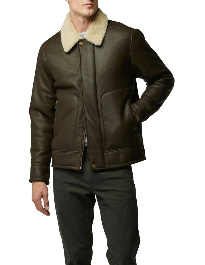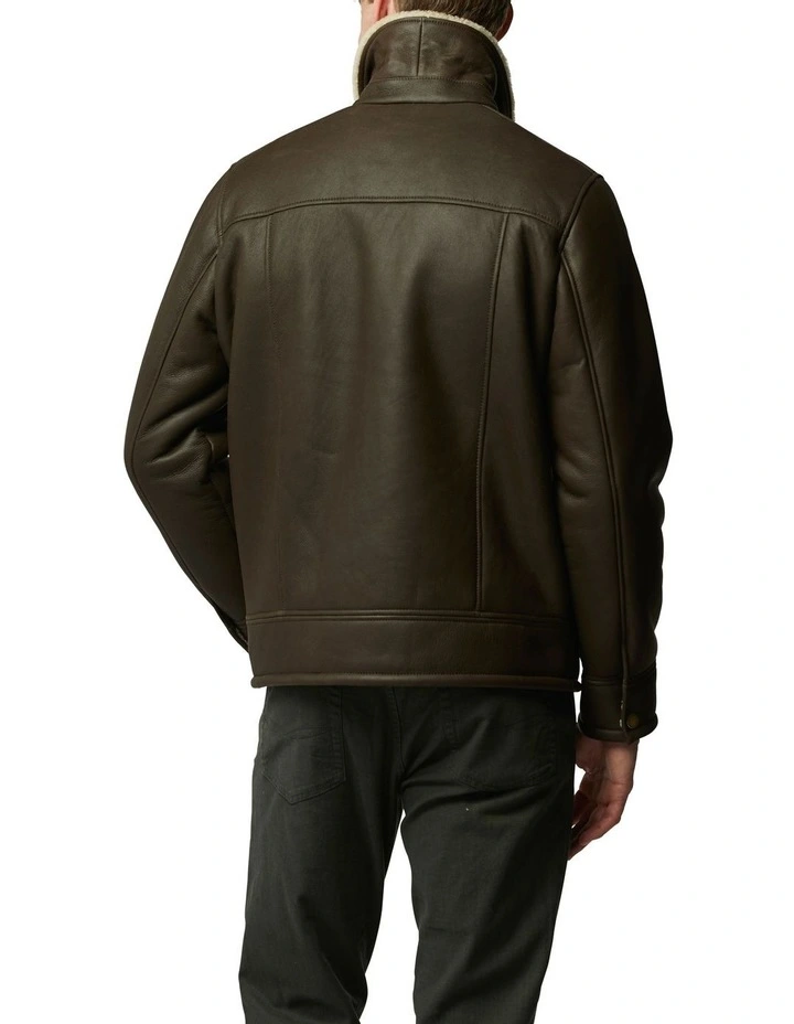 A statement in luxury, this premium leather jacket will look sharp with every outfit. Crafted from a top grade lamb skin, this full-grain leather jacket features a luxuriously rich brown colour with a shearling collar and interior. Featuring premium metal zips and front welt pockets, and lined with a soft-touch lining. Take care of it, and it will last decades longer than our two-year guarantee.