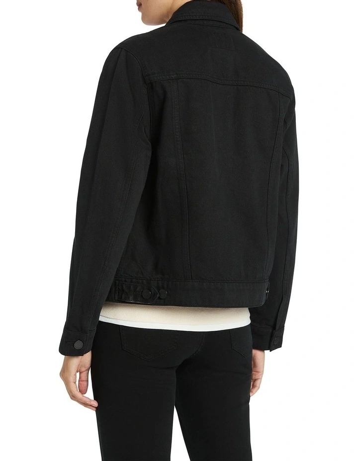 Delivering effortless layering, this classic denim jacket is offered in crisp black, which is perfectly accented with matte black David Lawrence branded hardware. Creating a neat fit with stretch for comfort, the jacket is made from Eco Wash Australian cotton denim, featuring further detail in flap patch pockets at the chest, welt pockets at the side, and a sharp shirt collar up top.