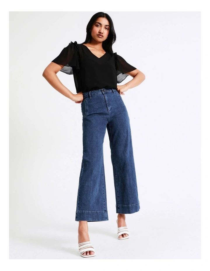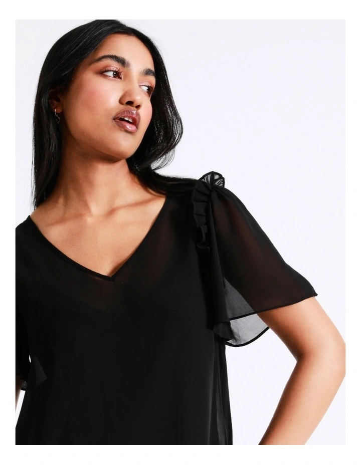 Style a charming look with a flutter sleeve top. This top boasts a sheer overlay, with beautiful flutter sleeves for an ultra-feminine look. A truly versatile piece, you can wear this top from day to night.