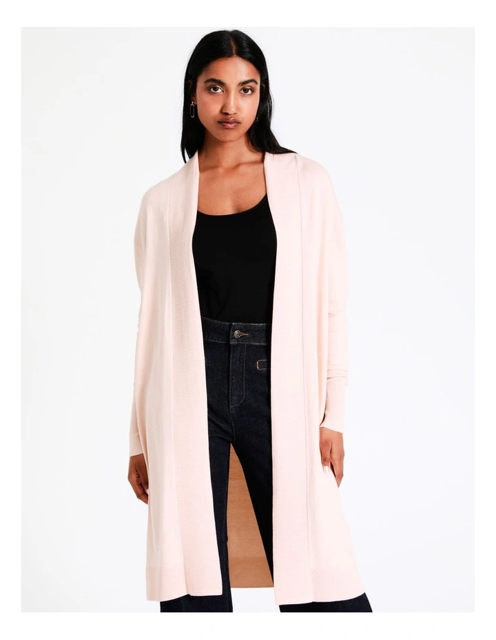 Round out your everyday wardrobe with a longline cardigan. This fashion forward cardigan has a longline design with an open front and long sleeves. Style it with wide leg pants for a chic silhouette.
