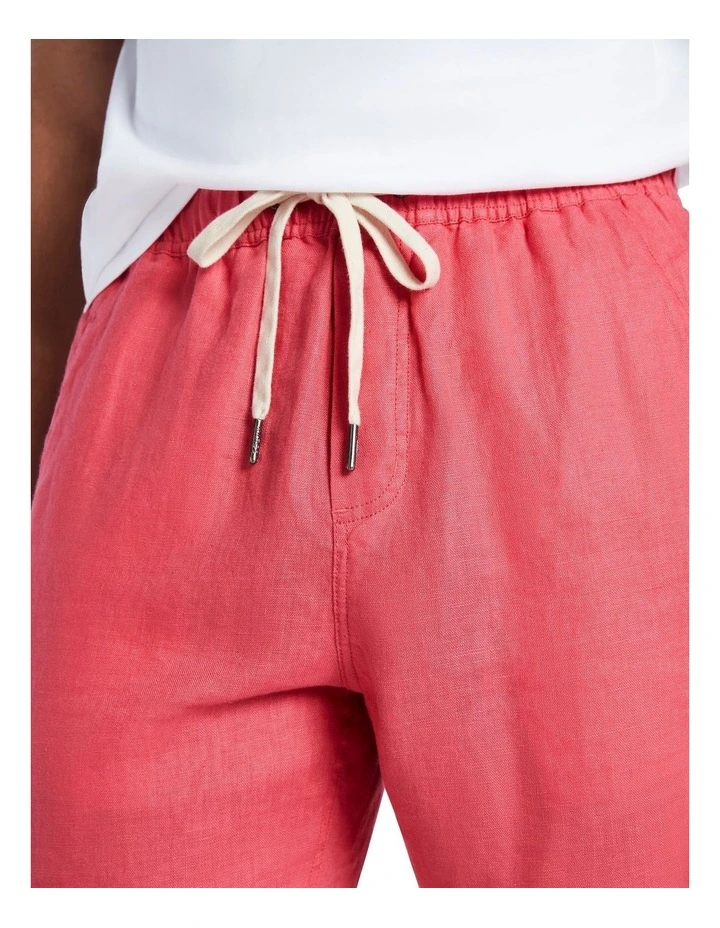 Gorgeously wearable, these shorts reveal relaxed shaping to mid-thigh, using soft, lightweight linen to ensure they stay breathable and comfortable, no matter the season. Deep pink in colour, the shorts utilise an elasticated waistband to deliver a pull-on style, with further detail found in a contrast drawstring tie at the front of the waist, and neat pocketing front and back.