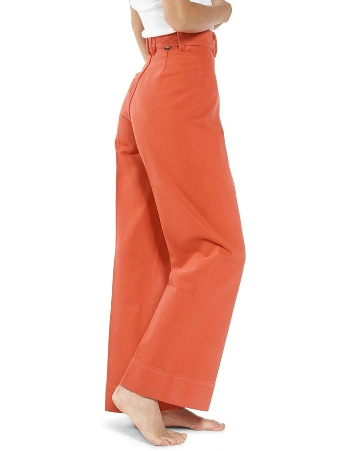 Thrills bestselling pant silhouette just got better, now available in Cadmium Red colourway. The Belle pant is an ultra high waisted wide leg jean with 70’s appeal. Featuring a full length with a wider hem opening, it fits snug across your hips. Our most flattering jeanever.