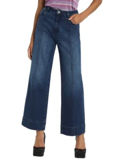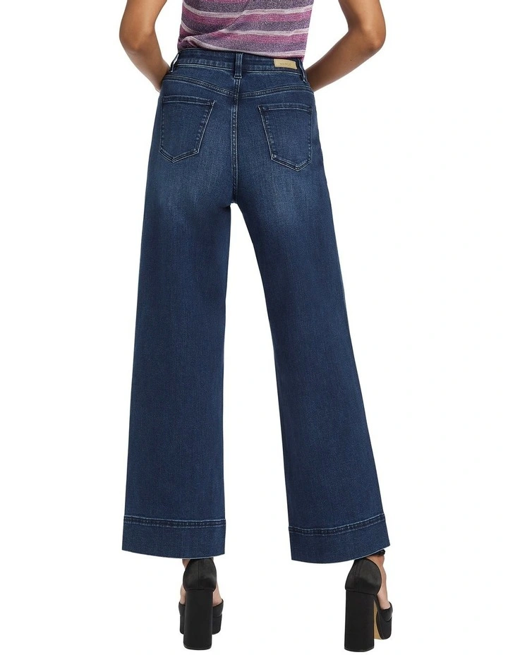 Descending through wide leg shaping to a flattering full length, these jeans deliver on detail as they show off broad cuffs and centre-seam detailing within a dolphin blue rinse. Offering power stretch within Eco Wash cotton-blend denim, the jeans fasten at the front with a button-and-fly closure, completed by belt loops at the waist and classic five pocket jean styling.