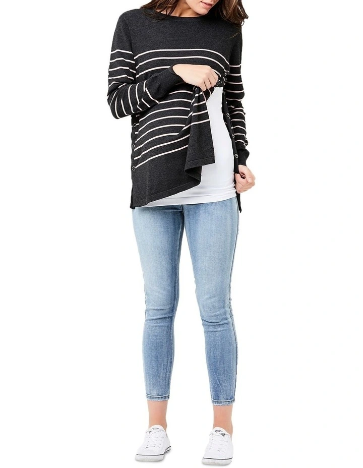 You’re going to love how versatile and easy to wear this piece is! The Button Up Nursing Knit features a contrast, yarn dyed stripe and full-length sleeves as well as easy, snap buttons in the side seams for quick nursing access. A must-have for your work and weekend wardrobe.