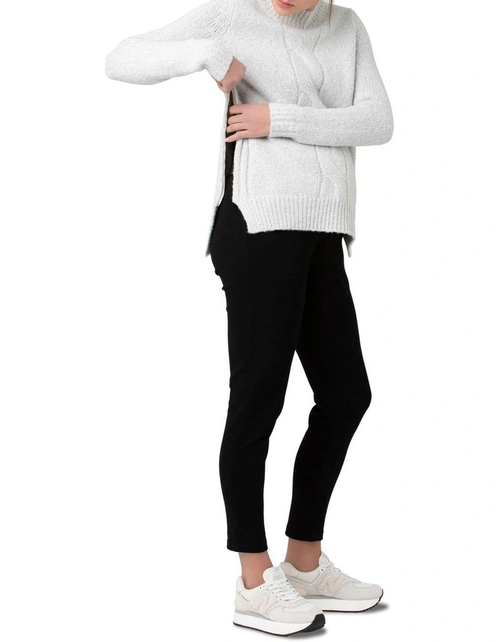 Soft, textured knit with a comfortable fit. Our Cable Nursing Knit features, zips in the side seams for nursing access post pregnancy.