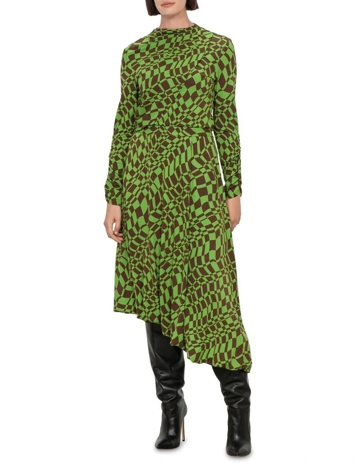 Draped in a viscose blend jersey, this top features our custom Distorted Check print. Lightweight and stretchy, this top with ruched sleeves and a front drape overlay detail looks great layered under coats. Pair back with the Check Jersey Bubble Skirt and finish with knee high boots for an effortless look.