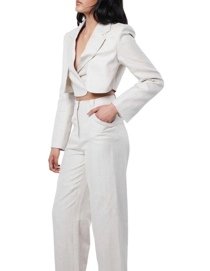 Sculptural and sleek, the Cold Heart Blazer showcases an asymmetric wrap design beneath the tailored jacket. This unique piece features a neutral herringbone pattern, a structured collar, padded shoulders and a cropped length. Style with our Cold Heart Skirt for a fashion forward ensemble.
