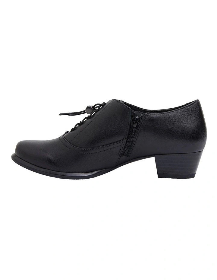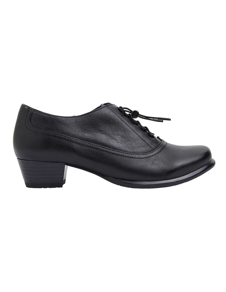 DAMIAN offers the best of corporate convenience, dressed with a comfortable block heel and secure non-slip grip sole. Featuring elasticated lace detail, this style is versatile enough complete your workwear ensemble with everything from stockings to pencil skirts! Approx. 3cm heel Leather upper Synthetic lining Synthetic sole Wide comfort fit (C fit)