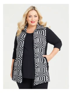 Introducing the ultimate diva staple to elevate your wardrobe, the Diva Spliced Jacquard Vest from Taking Shape. This jacquard knit vest is beautifully crafted with bamboo ponte side panels that flatter your curves and offer premium comfort. The zip at the front adds a stylish touch, while the handy side pockets make it a practical choice. Dress it up with a flowy blouse and heels for a sophisticated evening look or dress it down with a simple tee and jeans for a casual vibe. With its versatile style and fabulous fit, this vest is perfect for any diva who wants to add a touch of elegant charm to her outfit. Experience the ultimate in plus-size luxury and make a statement with the Diva Spliced Jacquard Vest from Taking Shape.