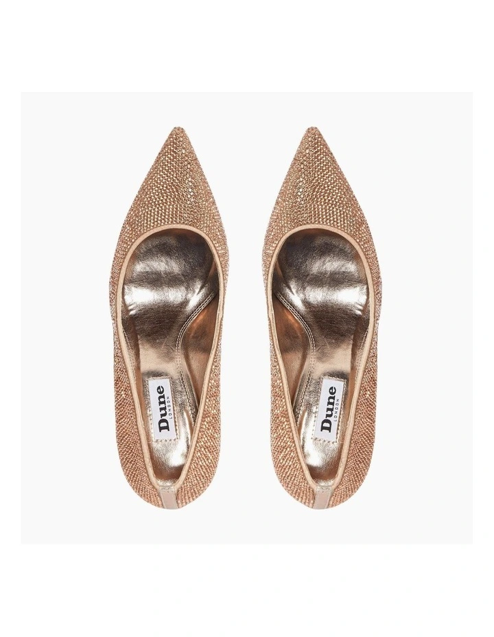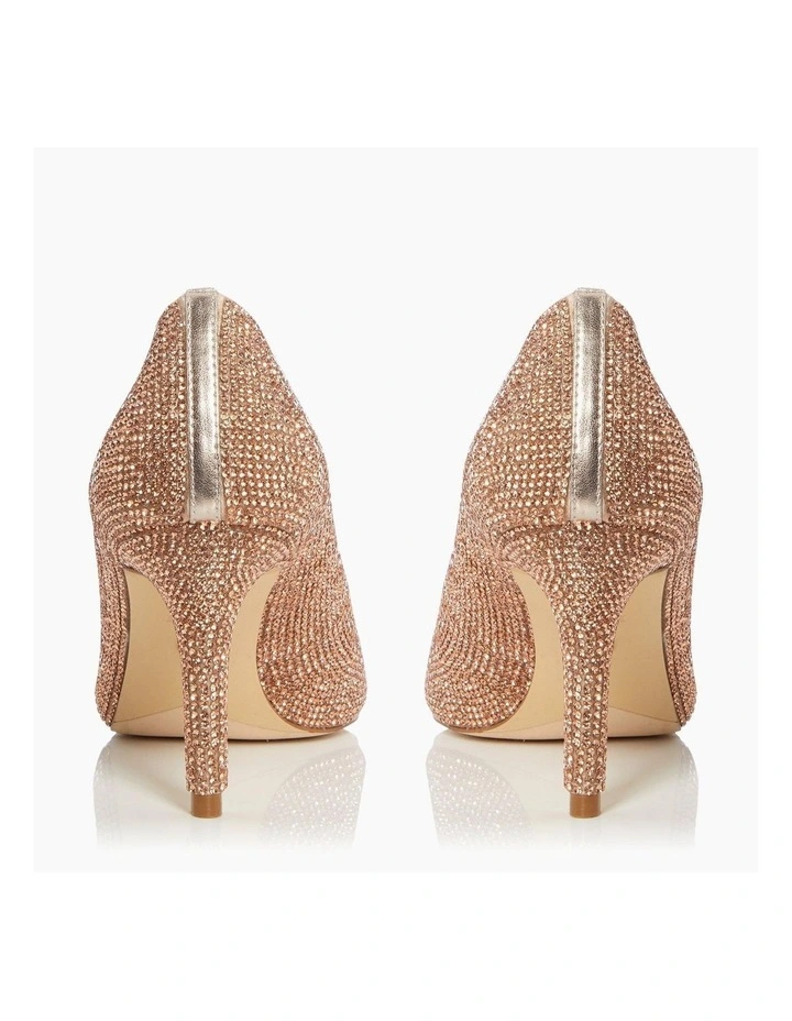 Turn heads at your next formal event with the Bombshell court shoe. Resting on a sleek heel and shaped with a striking pointed toe. Covered in dazzling rhinestone embellishments for an eye-catching finish.