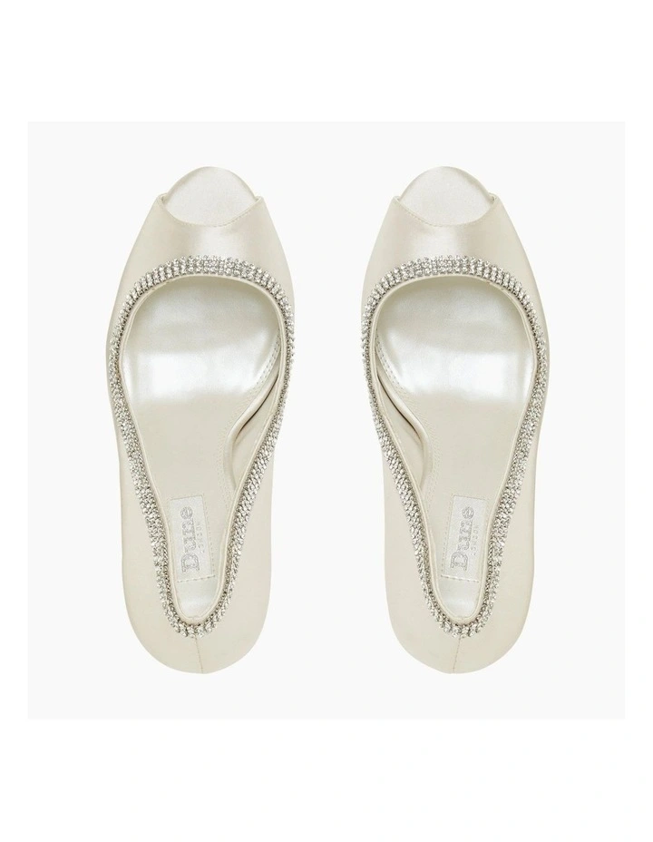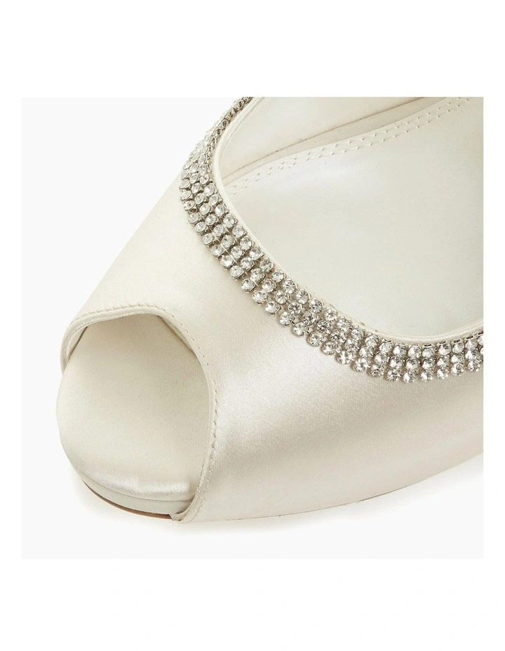 This bridal shoe comes with a satin dust bag and ivory shoe box. Fitted with memory foam sock padding for all-day comfort. Its upper and sole are decorated with sparkling crystals.