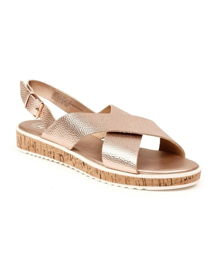 Channel casual elegance with this fetching Dune London sandal. Designed with stylish cross straps and a buckle fastening at the ankle. A flat cork heel and shark sole complete this summer style.
