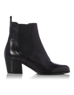 The Patterson boot from Dune is a great option for your off-duty wardrobe. It includes a low block heel a rear tab and a classic almond toe. Finished with the signature elasticated side panel.