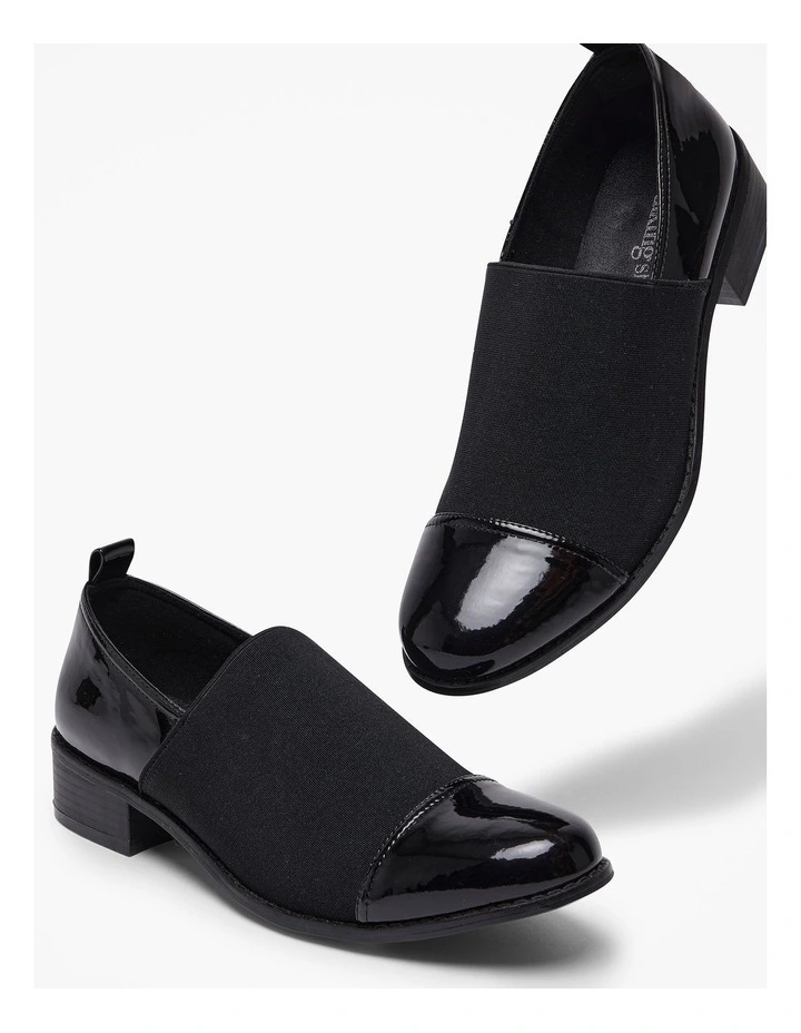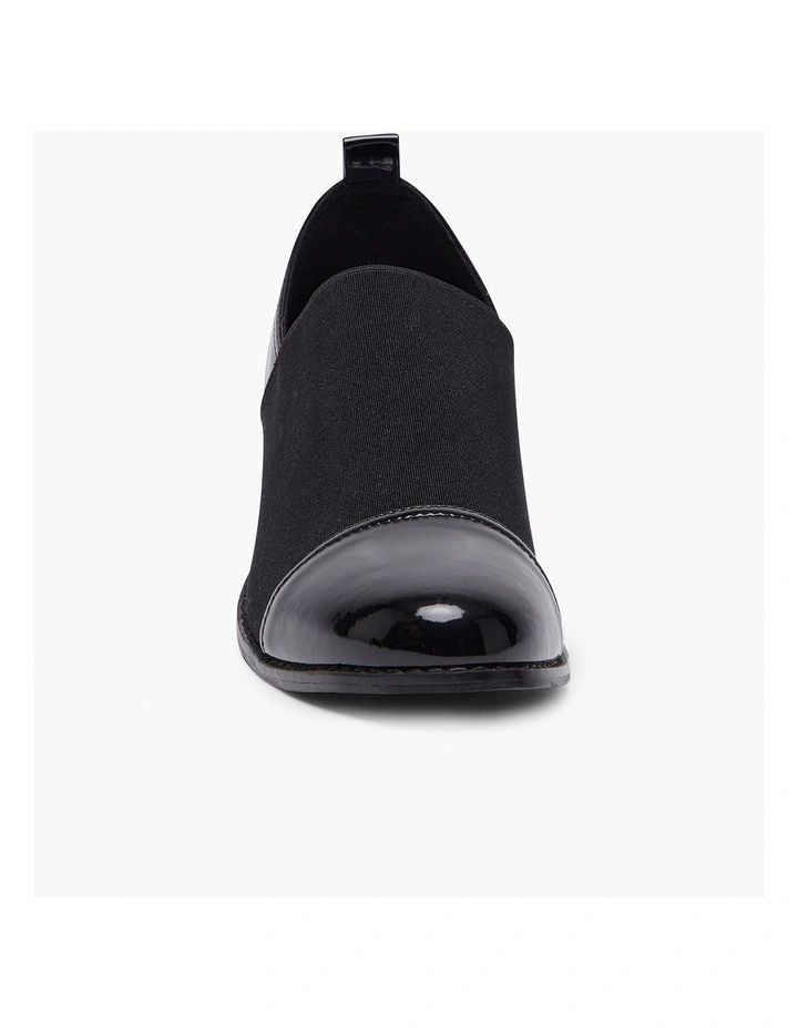 Our Elastic Panel Patent Shoe are the ultimate day to night shoe, this patent perfect heeled number from Taking Shape features a stretch elastic upper for extra support and stretch. The stable wide block heel elongates the leg and our famous dense cushioned memory foam insoles will take the burden off your feet so that you can stay on your feet with no stress or discomfort.Â