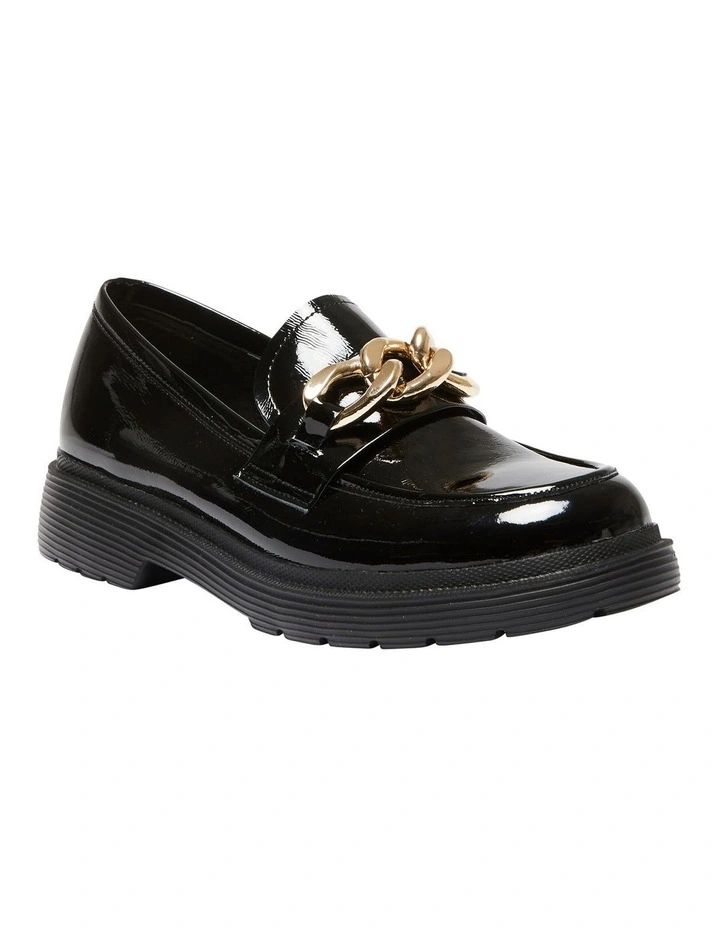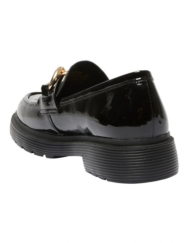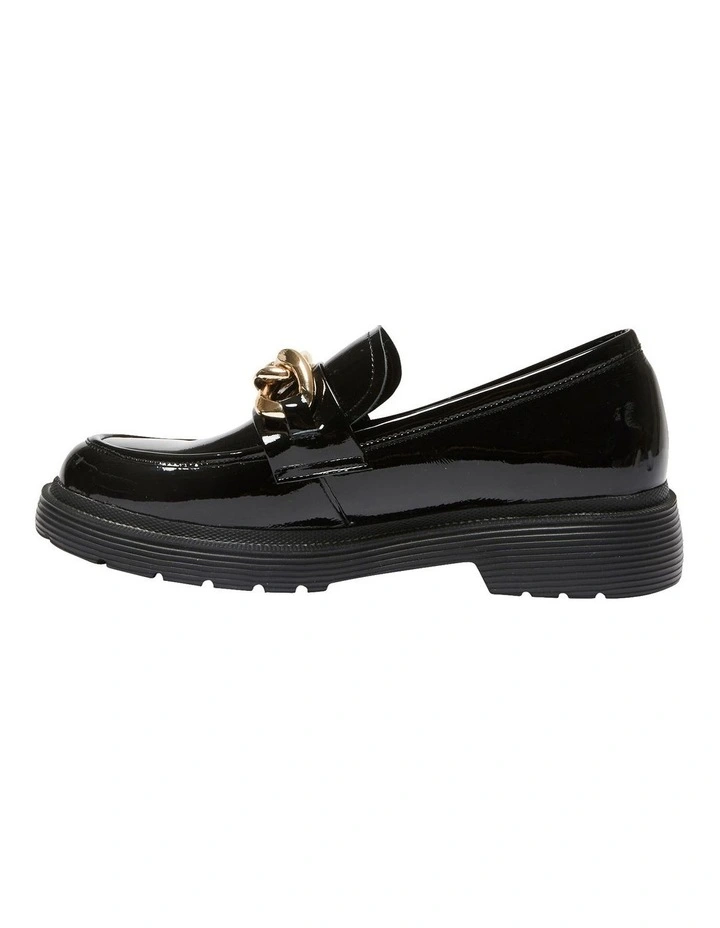 A chic wardrobe staple, ELOISE by Easy Steps combines comfort and versatility in its contemporary loafer silhouette. Elevated by gold-tone chain detailing across the penny strap, it tapers to a slender round toe and rests on a chunky layered sole. Style yours with a sweater and slip skirt for a cosy look.