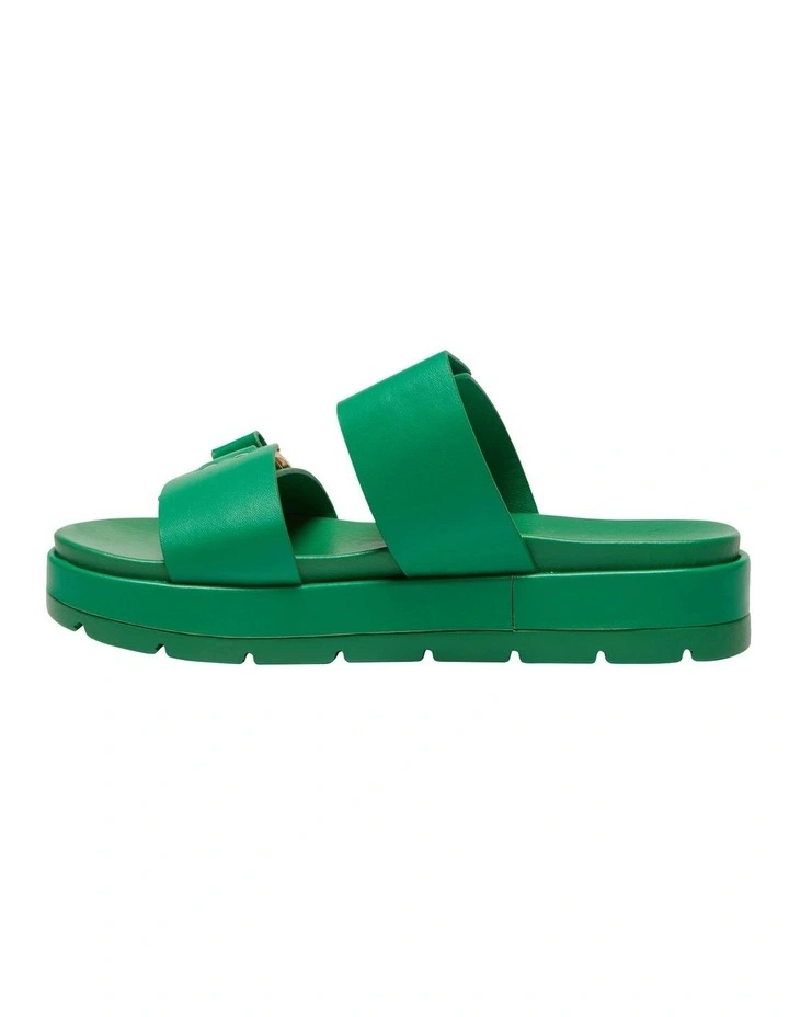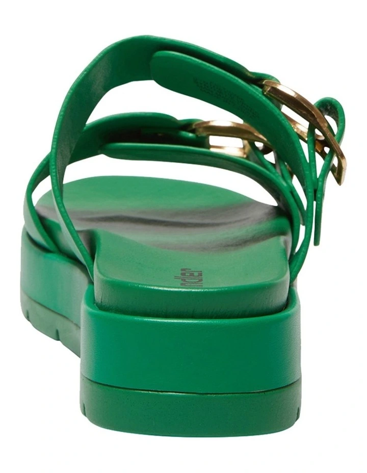 FICTION captures considered elegance with this laid back silhouette. They feature a classic two-strap construction accented with gold hardware, moulded footbed for day-long comfort and support and then set on a raised flatform sole. Complete the outfit by pairing this with gold jewellery and high A-line skirts.