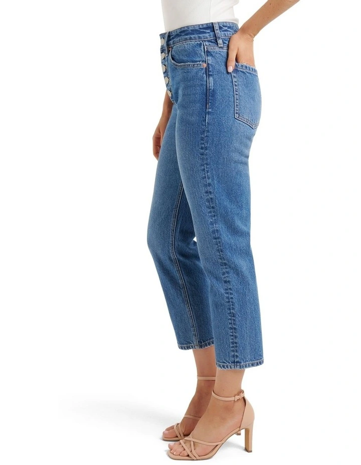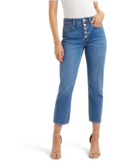 Feminine design meets trending style. The Eden Mid-Rise Button-Front Slim Jeans from Forever New is the piece your wardrobe’s been waiting for.