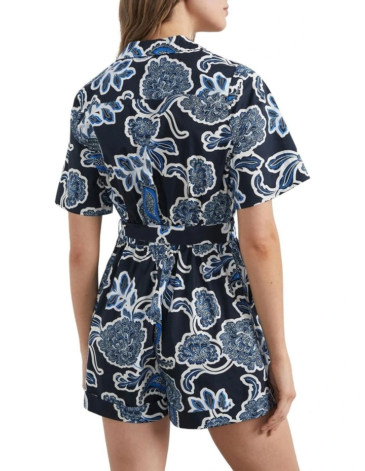 Our Button Through Belted Playsuit offers an easy and on-trend summer outfit. Featuring a button through design with camp collar, double pockets, and elasticated back for comfort and a matching belt. Pair with our Riva Leather Sandal and Kelly Textured Tote. Our model wears a size AU 8/XS. She usually wears a standard AU 8/XS, is 179cm tall, and has a 84cm bust, 94cm hips and 61cm waist.
