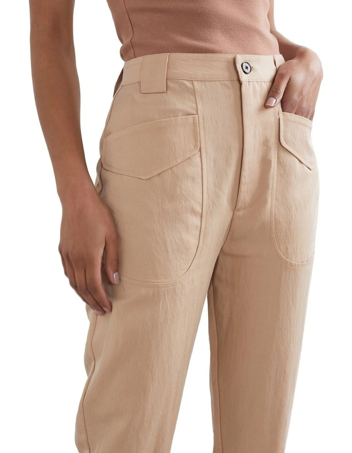 Our Soft Utility Pant offers comfort and versatility. Featuring a mid rise design, elasticated cuffs, thick feature belt hoops, front flap pockets and back welted pockets. This garment is made from TENCEL Lyocell, an environmentally sustainable fibre made from naturally biodegradable wood pulp. The fabric is breathable, soft, and has a smooth feel. Pair with our Essential Tank and Milla Leather Sandal. Our model wears a size AU 8/XS. She usually wears a standard AU 8/XS, is 173cm tall, and has a 81cm bust, 94cm hips and 64cm waist.
