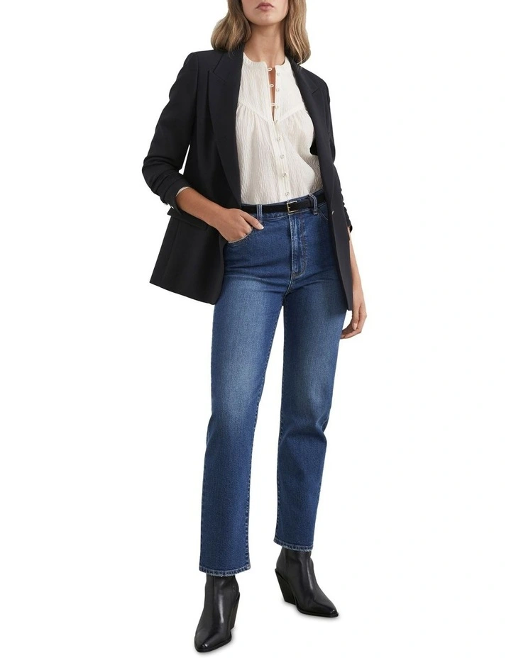 Our Straight Fit Jean is a wardrobe staple. Featuring a high waistline, fly front with FC branded shank button, contrast stitching detail and front slant pockets. Wear with our Check Single Breasted Blazer and Taylor Leather Loafer.