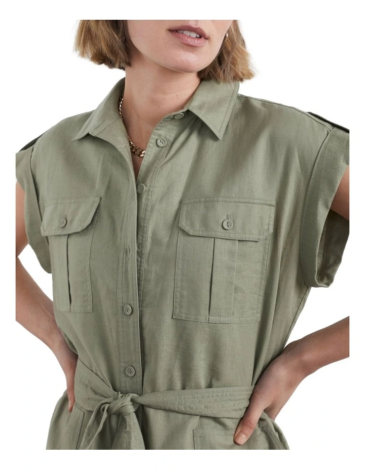 Versatile and on-trend, our Utility Playsuit offers a button through design with feature tortoiseshell pattern buttons, front patch pockets, cap sleeves and utility detailing, with an elasticated back detail for comfort. Pair with our Ellie Leather Sandal and Phoebe Baguette bag. Model wears a size AU 8/XS. She usually wears a standard AU 8/XS typed, is 180cm tall, and has a 86cm bust, 95cm hips and 69cm waist.