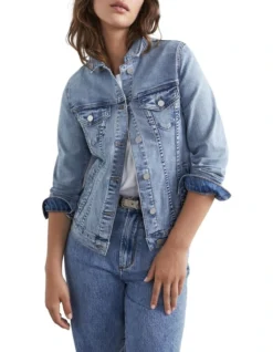 Our Vintage Denim Jacket is an easy-to-style must have for your wardrobe. Made from a cotton blend denim, it features classic stitched seams, front and chest pockets and brushed silver-toned buttons. Wear with a tee and your favourite pant or skirt. Our model wears size AU 8/XS. She usually wears a standard AU 8/Extra Small, is 180cm tall, and has a 78cm bust, 94cm hips and 62cm waist.
