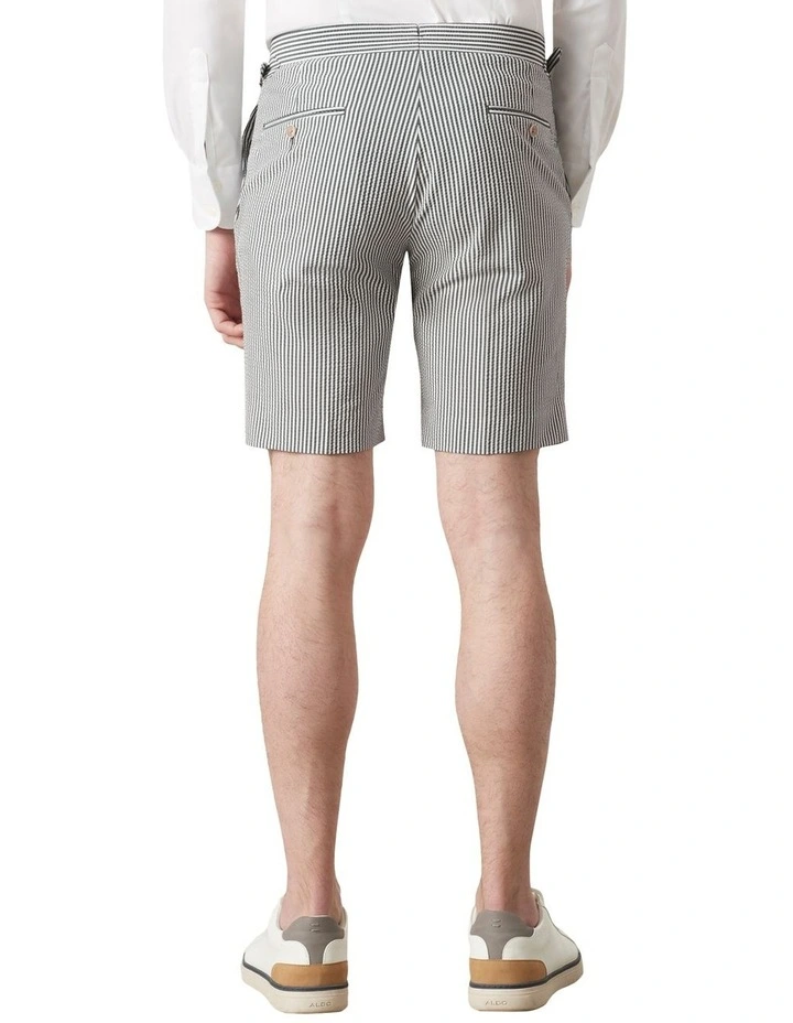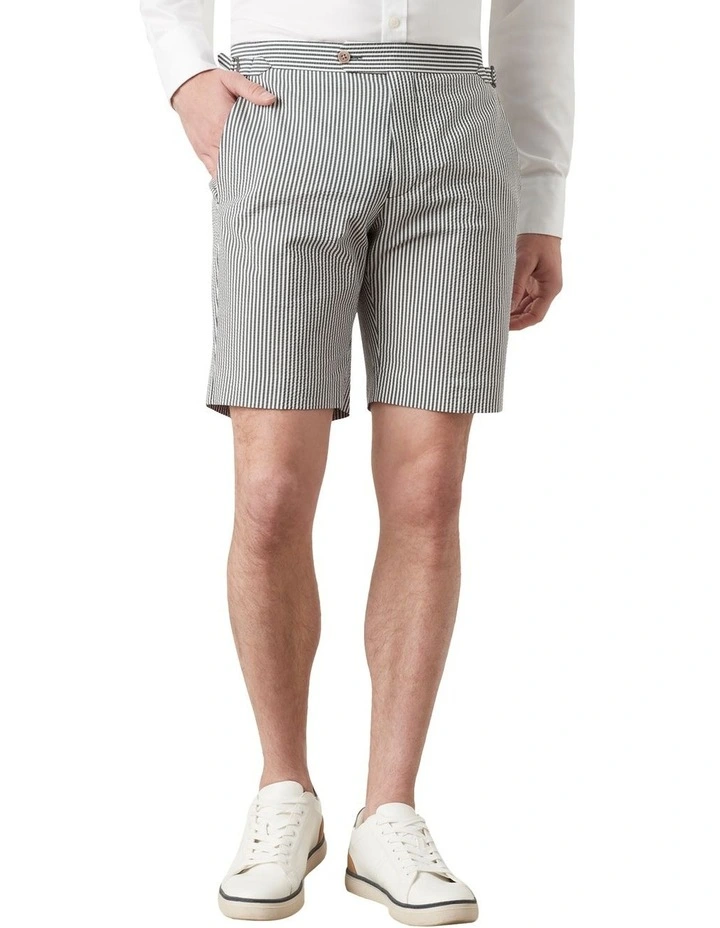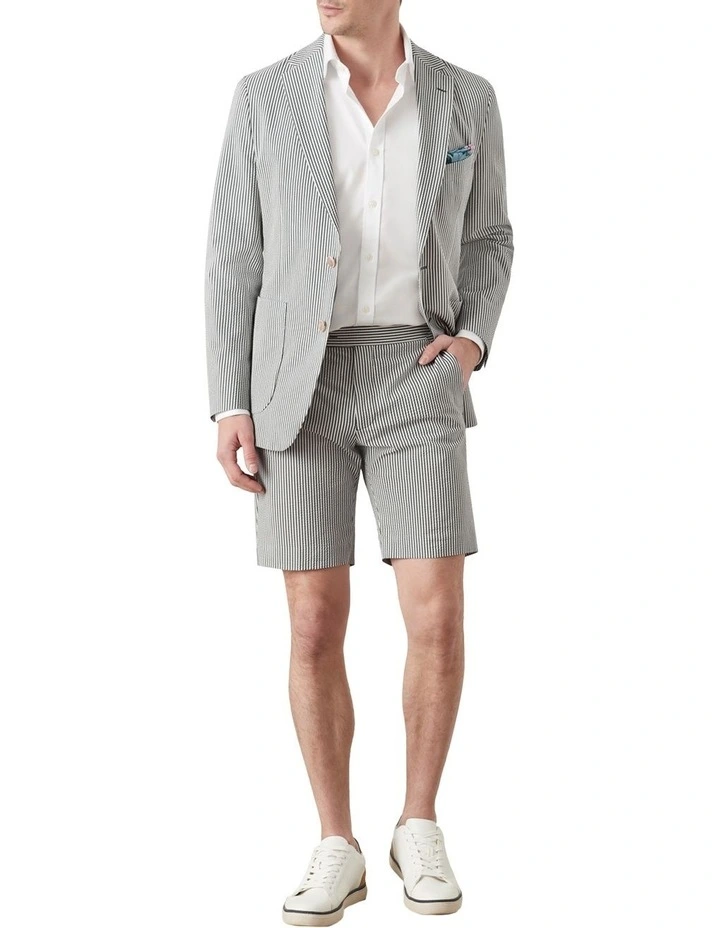 Seersucker is a timeless, elegant fabric for the spring/summer season due to its super lightweight and breathable ‘puckering’ cotton fabric and enjoyable wear, no matter the occasion. Its cotton fabric is woven in such a way that sees threads bunch together, giving the fabric a wrinkled appearance unique to Seersucker. We thought it only appropriate to craft our own Seersucker masterpiece in the Gatsby Shorts. Crafted for a slim fit, these airy shorts feature a flat front, modern side adjusters and a tailored waistband with a three button closure, enabling the shorts to sit nice and flat on the body. These will become your go-to shorts this summer and will look slick with a crisp white t-shirt and sneakers or paired up with its Jacket and waistcoat ensemble for more formal affairs.