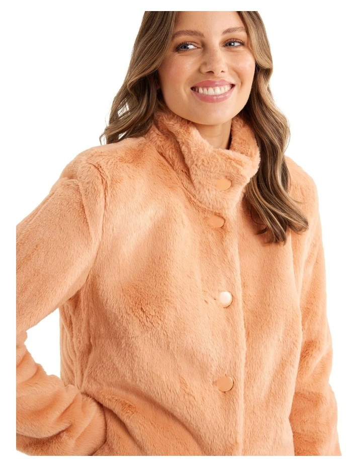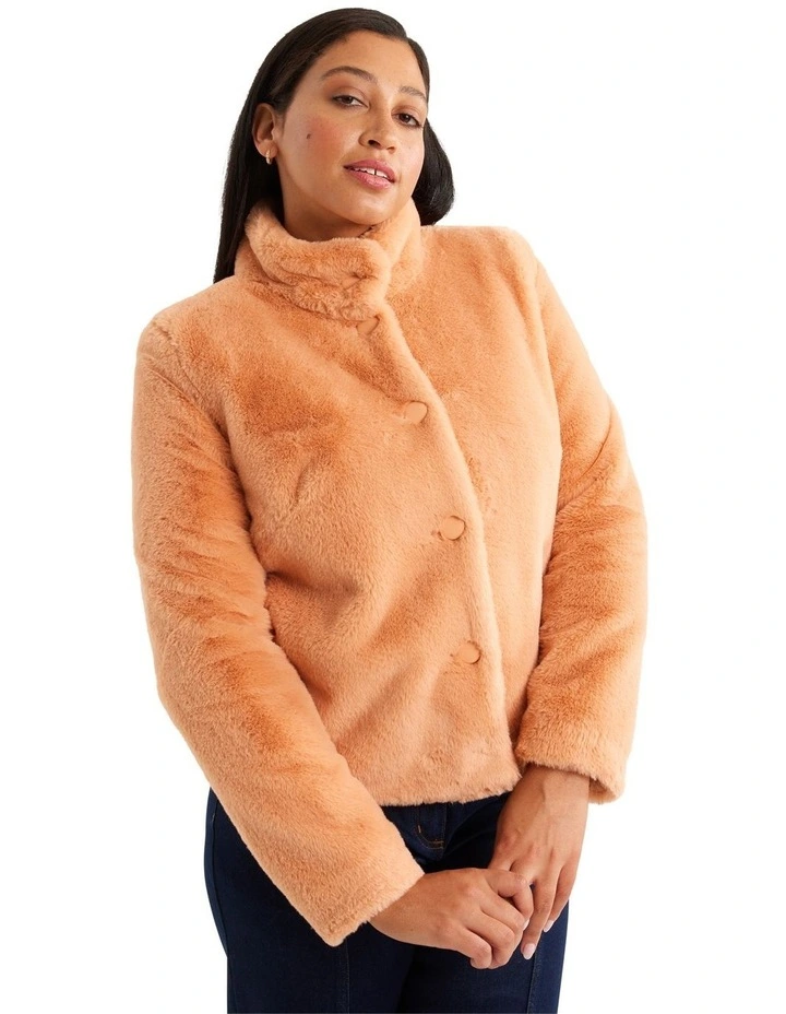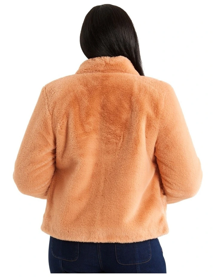 The Gigi Jacket is a must-have outerwear piece that is both stylish and functional. Made from a heavy weight faux fur material, this jacket provides ultimate warmth and comfort in colder weather. The regular fit ensures a comfortable and flattering silhouette for all body types, while the front button through design allows for easy on-and-off wear. The full length sleeves and collared neckline provide a classic and sophisticated look, making it perfect for both formal and casual occasions. The jacket is fully lined, providing added insulation and protection against the cold weather. The inseam pockets add practicality and convenience, allowing for easy storage of small items. The light ginger color of the jacket adds a touch of warmth and softness to any outfit, making it a versatile piece that can be easily paired with different styles and colors.