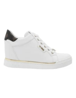 Meet this season’s MVPs – the Guess Faster-A. These white and gold chunky sneakers are the perfect blend of edgy streetwear and sophistication, complete with a smooth leather-look finish, bold silhouette and front lace-up design.