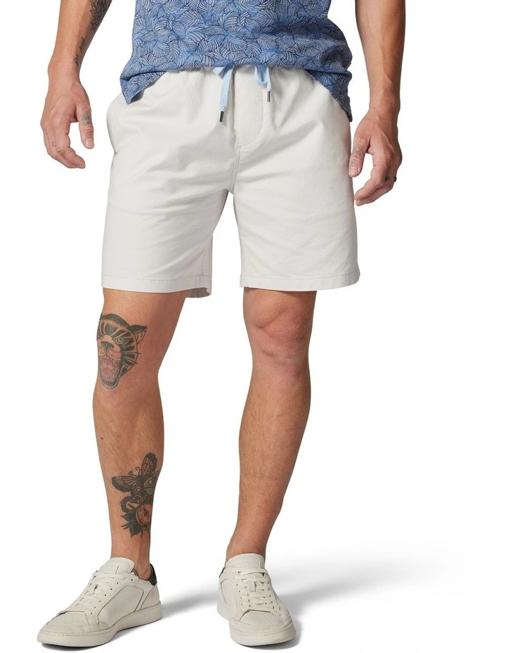 These relaxed shorts are a versatile go-to for your wardrobe. Theyre crafted from a super comfortable and easy care cotton-elastane blend and feature an elasticated waist, draw cord, inseam pockets, and 7 inseam. A textured two-tone weave lends the fabric a little extra interest, and theyve prewashed for softness from the word go.