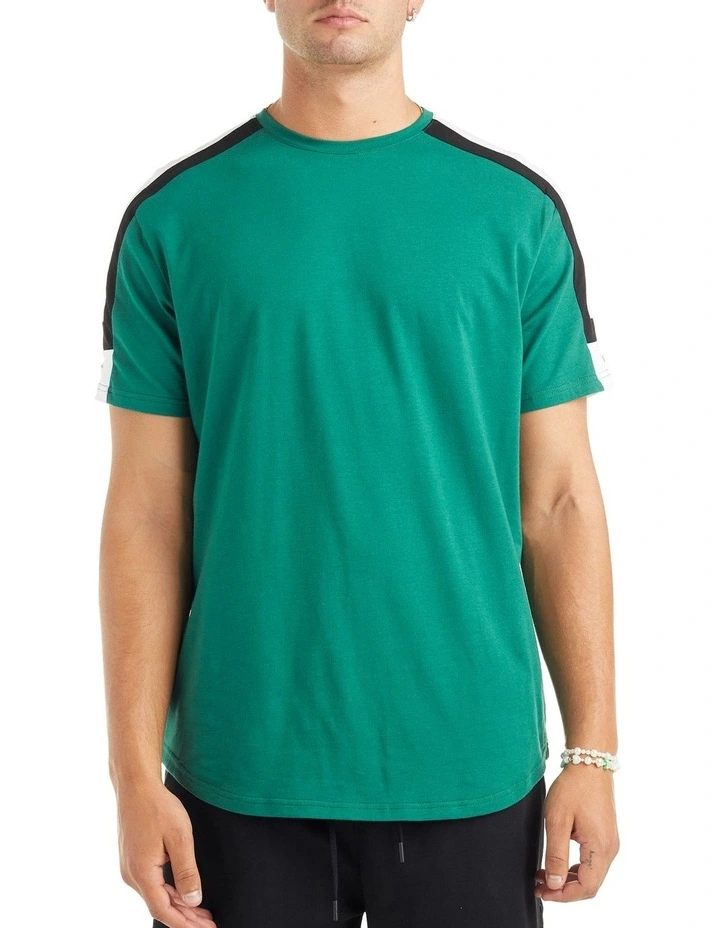 Features: Crew Neck Tshirt, Shoulder & Sleeve Panels, Embroidered Logo, Curved Hem