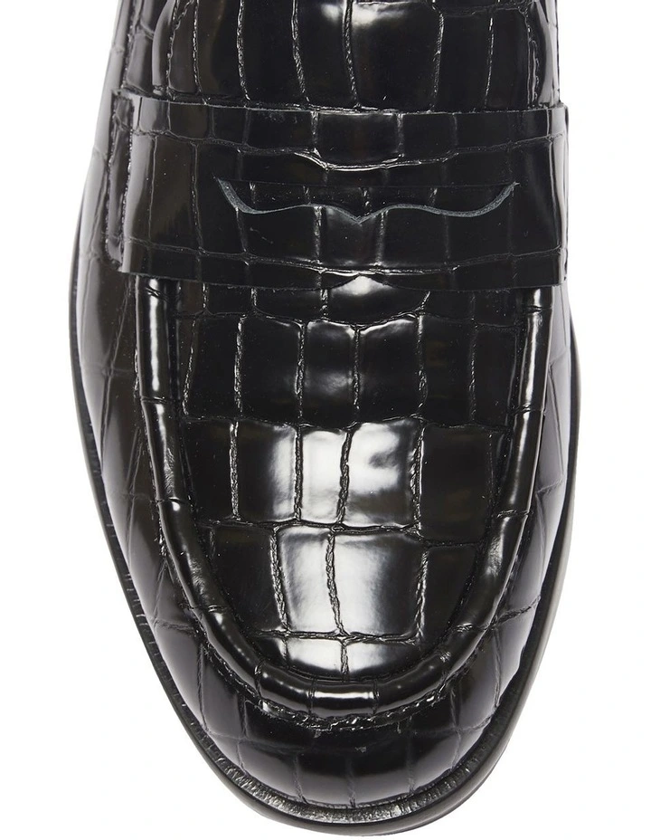 KASSIDY brings an elegant finish to casual and smart ensembles alike. The sleek silhouette features a rounded toe shape and a a classic penny bar across the front vamp, then rests on a stacked heel for a sophisticated note. Slip them on to bring a confident mood to off-duty edits.Â