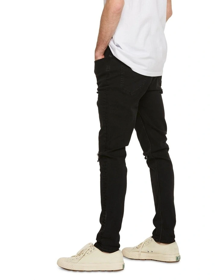 Our most popular skinny fit, the Z-One is worn low on the hips and tapered through the leg into a skinny ankle. Designed in a stretch fabric it features a faded black wash, beaten and worn to perfection for the guy who wants to walk straight into the perfect pair of vintage-style black jeans.