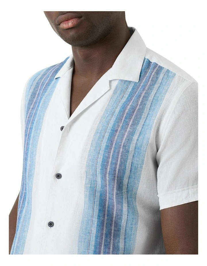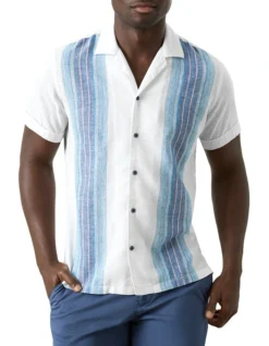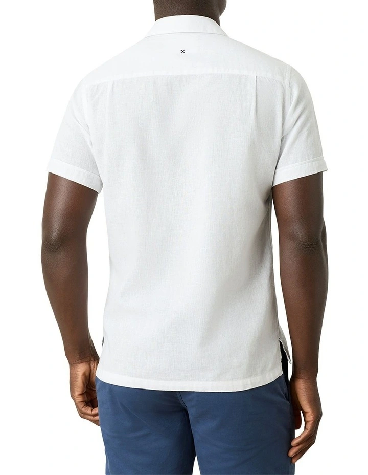 Kick off the summer season in style with the new Levanto Camp Collar short sleeve shirt. It’s crafted from a blend of linen and cotton and designed for a casual fit in a season-trending seafoam white hue.Â