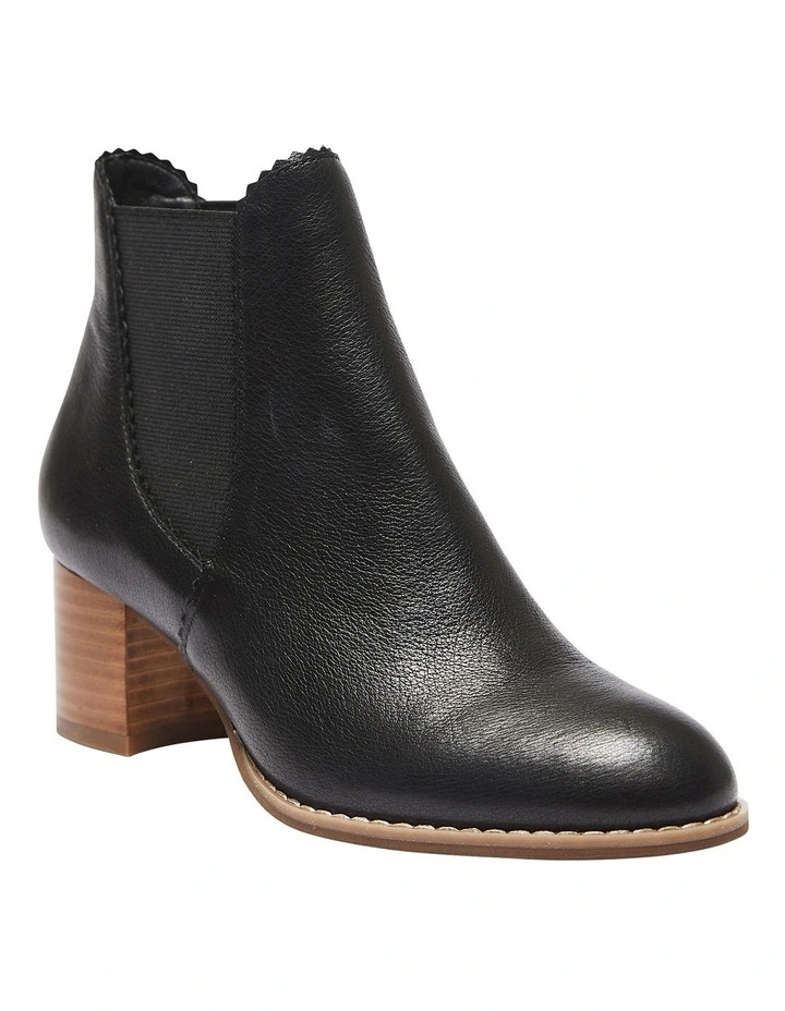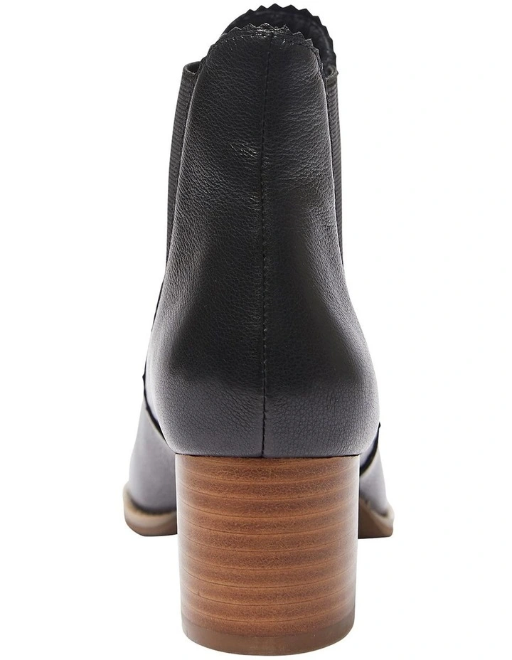 An elevated twist of the traditional boot, LIAM features a laser cut ridged detailing across the ankle cuff and side panels to bring an instant edge to any winter ensemble. They’re crafted with a leather upper to a rounded toe profile, elasticated side gussets for an ultimate fit and then set on a wooden block heel.