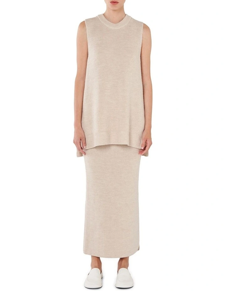 Our new Longline Vest made up in our premium merino wool yarn in a neutral colourway. This is a great layering piece for the winter season, throw over our Tailored Cotton Shirt for a great winter layered look. Pair with our matching merino wool knitted skirt for an easy everyday look.
