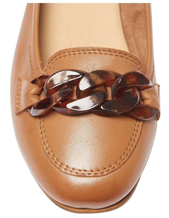 Elevate minimalist dressing with MAGENTA making these your favourite pair to wear under tailored pants or fitted jeans. The leather upper is shaped to a clean rounded toe design, accented with a tortoise shell inspired chain detailing across the front vamp and then set on a small stacked heel.