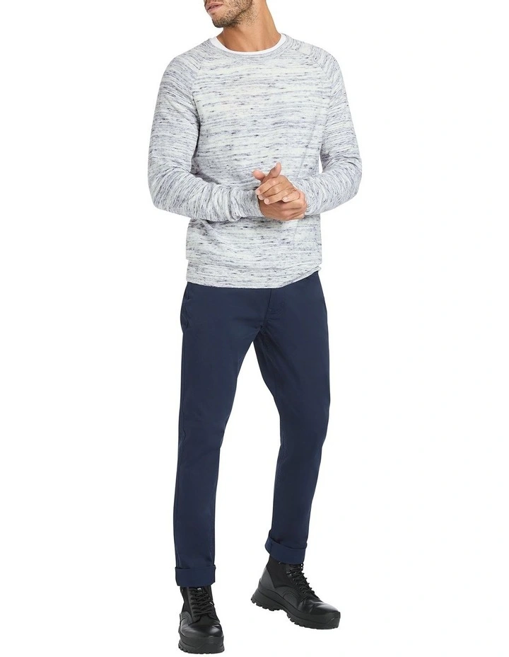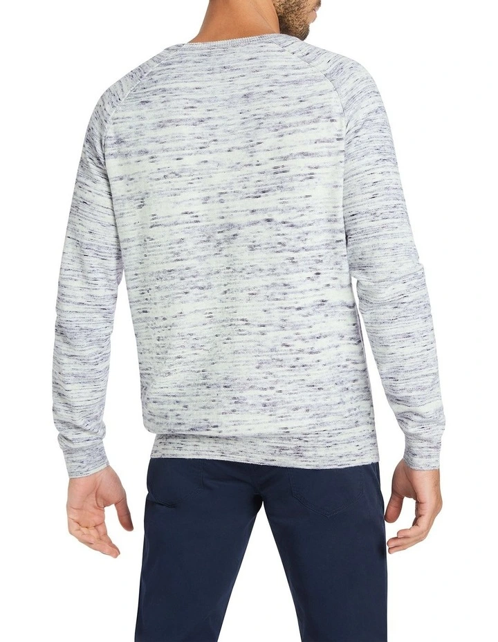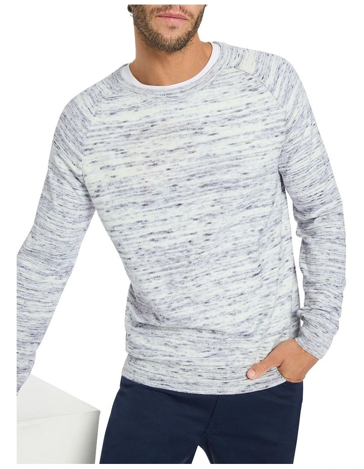 Wrapping you up in super soft cotton, this knit sweater creates a warm, lightweight layer, effortlessly enhanced by a hazy horizontal stripe within a base of white. Featuring raglan shoulder shaping within a neat long sleeve design, the sweater offers a flattering regular fit completed by soft-touch rib trim at the crew neckline, cuffs and body hem.