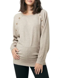 Made from a soft cosy yarn, our Megan Nursing Knit will be perfect for your winter wardrobe. With easy to wear batwing sleeves, a round neckline and button up nursing access, you can wear this throughout your pregnancy and beyond.Â