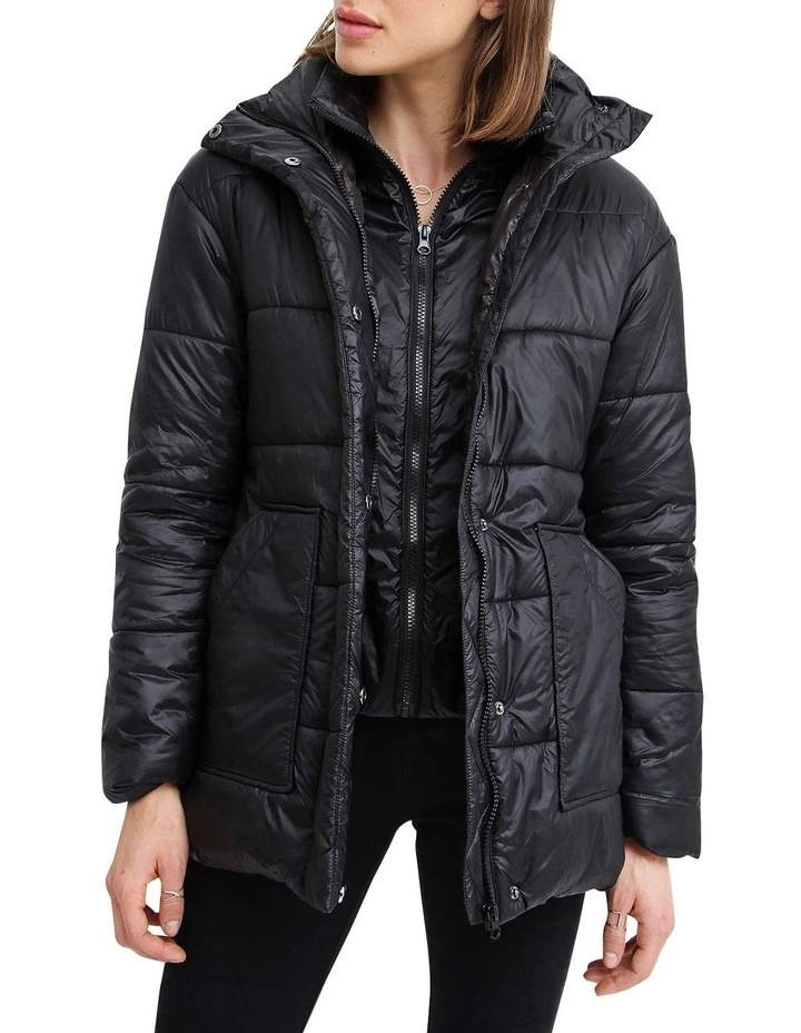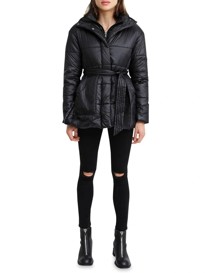 Glamourize your winter puffer with the Moonrise Belted Puffer Jacket. The high-shine nylon shell fabric elevates this sporty look and brings an urban appeal with multiple zippered styling options and cinched with a belt.
