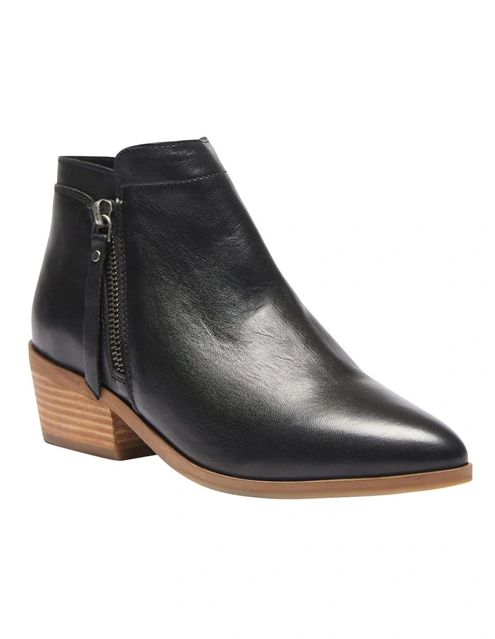 NOLAN brings a contemporary aesthetic to the forefront of this western inspired silhouette. They’re crafted with a smooth upper to a classic pointed toe, detailed with a decorative zip on the outer side panel and then set on a contrasting Cuban style heel.