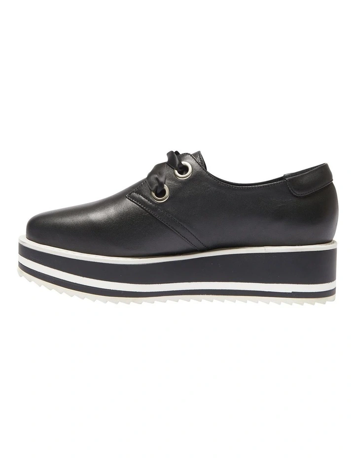 OKLAHOMA adds contemporary and playful touches to the classic slip on style. They’re crafted with a leather upper to a rounded almond toe profile, fastened with satin fabric like laces that wrap around silver coloured eyelets then resting on a chunky lugged textured sole. Wear them to bring a new directional edge to your transeasonal wardrobe.