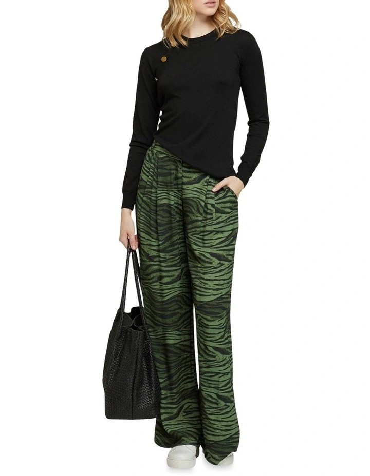 Ooze confidence and style in the Chantel Animal Print Wide Leg Pants a timeless and sleek look for the modern woman. These striking pants are crafted from a lightweight fabric with a cool-tone animal print and feature side pockets, belt loops and zip closure. Team it with a black knitted top and white sneakers to complete the look. Our model is wearing a size AU 8 pants and usually takes a size 8. She is 178cm (584) tall with an 81cm (32) bust, a 63cm (25) waist and 86cm (34) hips.