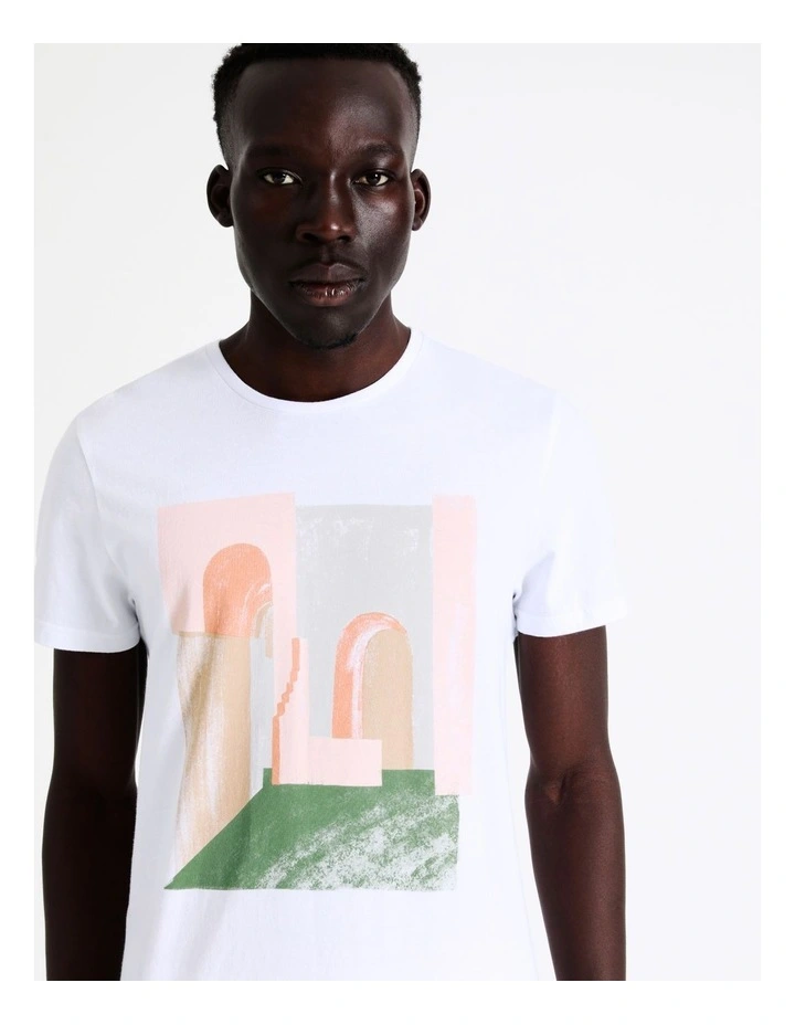 Blaq Paxton Placement Print Short Sleeve Tee in White