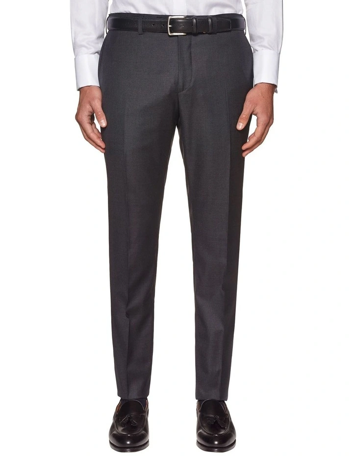 Thoughtfully tailored from 100% Australian merino wool, the Phifer Charcoal Trousers created by M.J.Bale; the ideal piece for business and or smart-casual occasions. Featuring a streamlined slim shape detailed with neatly pressed creases, tailored waistband with belt loops, zip and button fastenings.